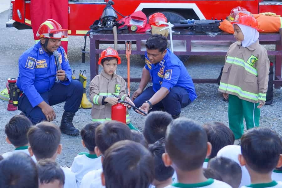 BANDA ACEH – Keceriaan terpancar dari wajah ratusan murid TK Kartika Banda Aceh saat menyambangi Markas Pemadam Kebakaran Kota Banda Aceh pada Jumat (06/02). Bukan sekadar jalan-jalan biasa, para siswa ini hadir untuk belajar langsung mengenai profesi petugas pemadam kebakaran serta cara menjinakkan si jago merah sejak usia dini.