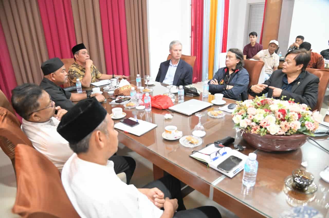 Muharram Idris yang akrab disapa Syech Muharram, menerima audiensi investor dari PT Alqudsi Agri Aceh di Dekranasda Aceh Besar, Jumat (10/04/2026). FOTO/ MC ACEH BESAR