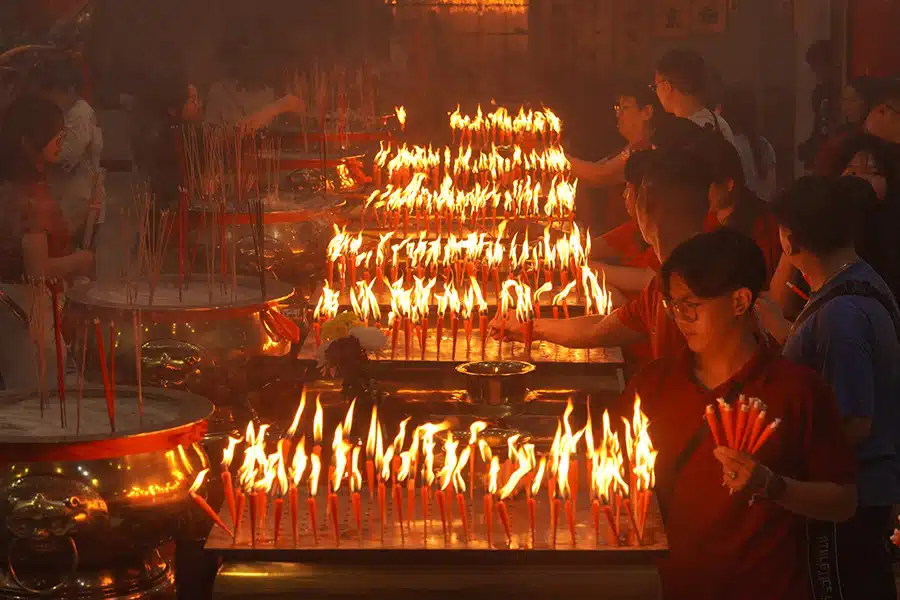 Menjelang tengah malam pada Senin (16/2/2026), warga mulai memenuhi Vihara Dharma Bhakti yang terletak di kawasan Peunayong. Mereka berkumpul untuk berdoa menyambut datangnya Tahun Kuda Api. Asap dupa yang dibakar memenuhi ruangan vihara bersejarah yang dibangun pada tahun 1936 (sebelumnya berdiri di Ulee Lheue sejak 1878), menyatu dengan khusyuknya doa umat yang memanjatkan rasa syukur serta harapan akan kesehatan dan kemakmuran di masa depan.